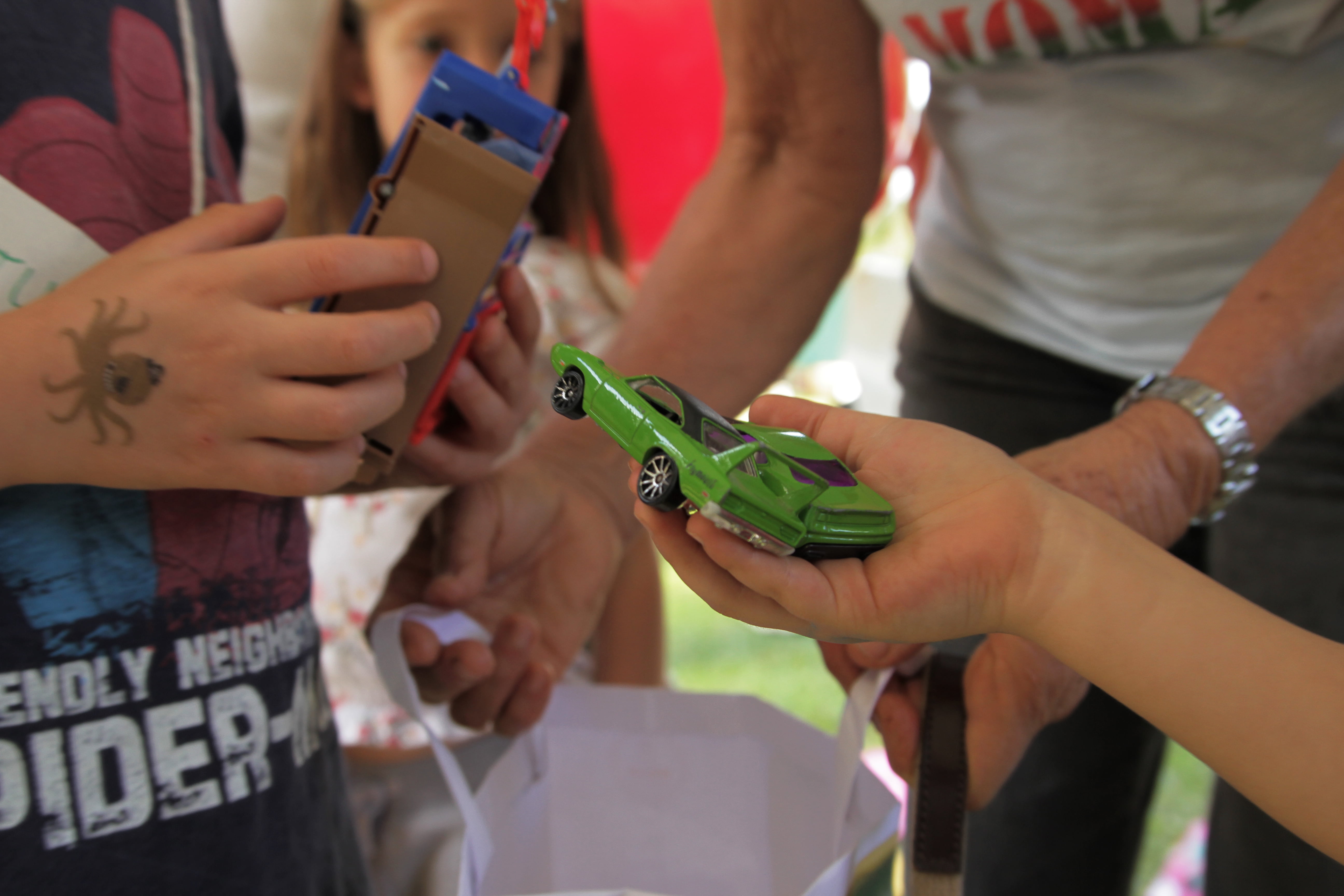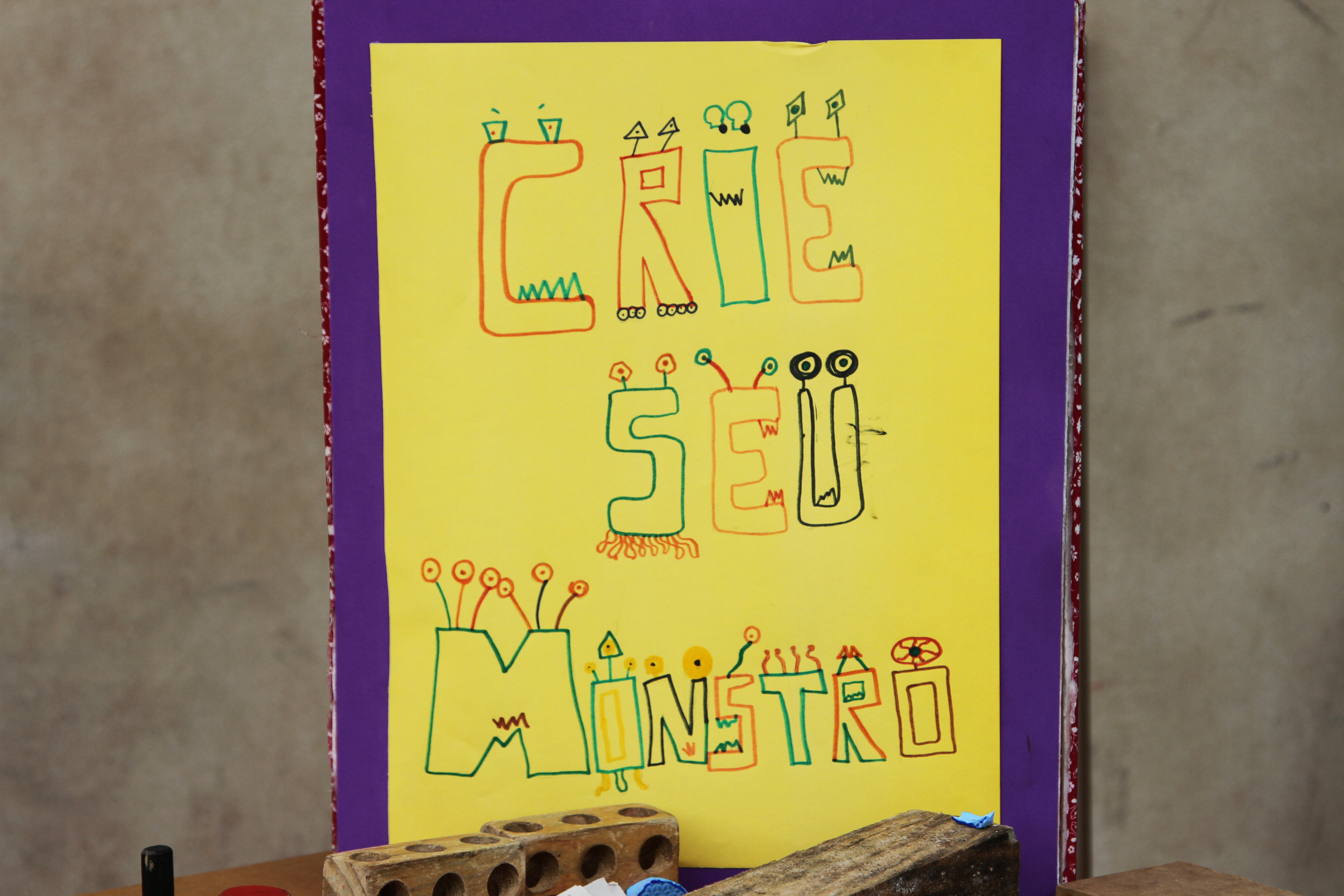 O dia amanheceu bonito: as cores, o clima, a vibração da nossa retina. Ao longe, uma grande tenda personalizada, um banner feito à mão, o detalhe pequeno dos jarros de flores, a toalha de mesa, as placas estilizadas indicavam espaços específicos: “Entrada”, “Saída”, “Brinquedos sem-dono”, “Crie seu monstro”. Coloca o crachá, escreve o nome, a fila cresceu, faltam esteiras, etiquetas. “Atenção! Atenção! A regra é brincar e trocar.”