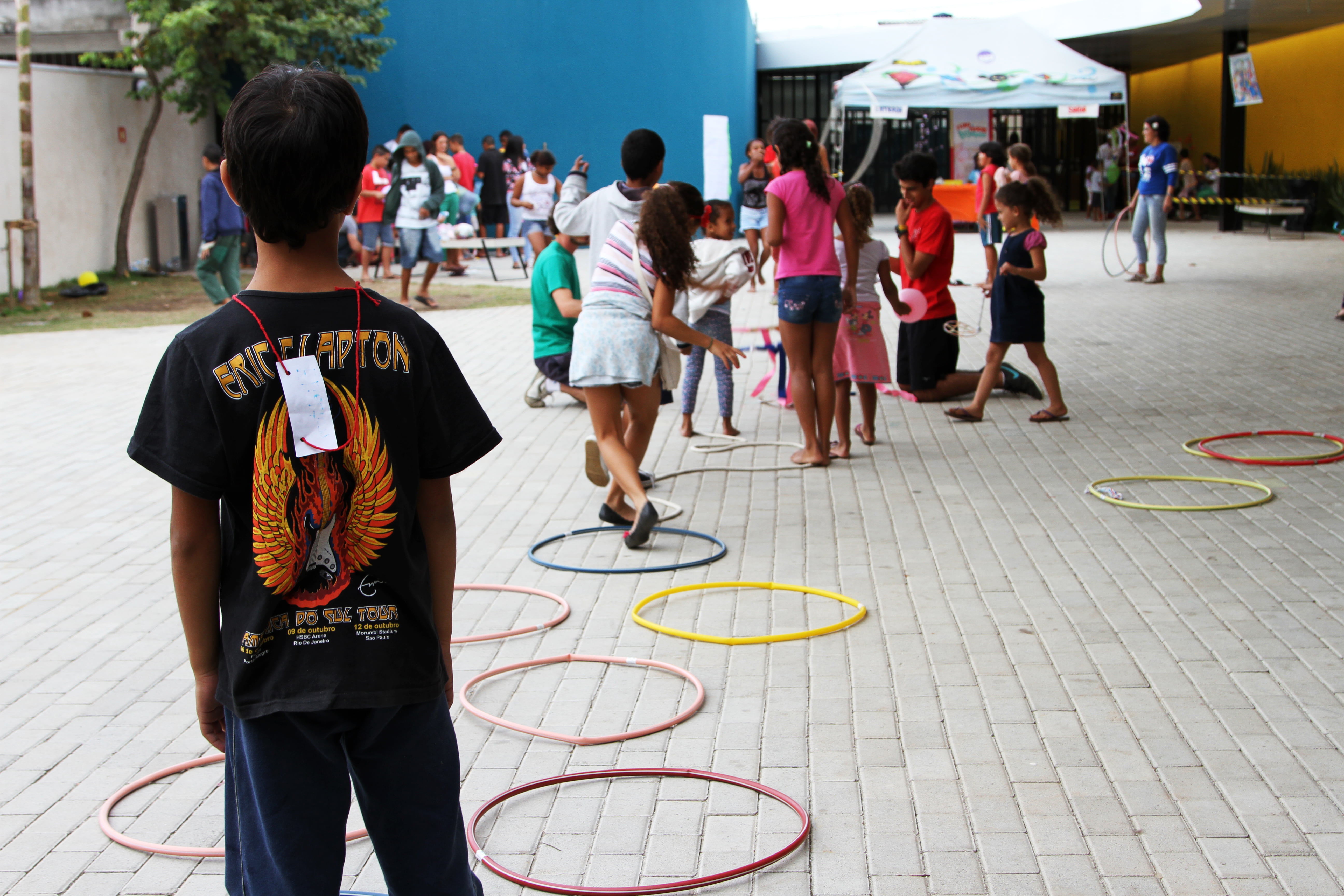 Aproximadamente 100 crianças e jovens aguardavam a abertura dos portões. As indicações nas placas eram esquecidas, o crachá passou a ser secundário – todos já se conheciam pelo nome. Guardavam brinquedos uns dos outros, pegavam alguns sem pensar. “Fiquem calmos, deixa rolar”. Não precisa de esteira. As crianças passeiam, batem as mãos lambuzadas de água e sabão, pulam corda a milhão e adoram uma competição.