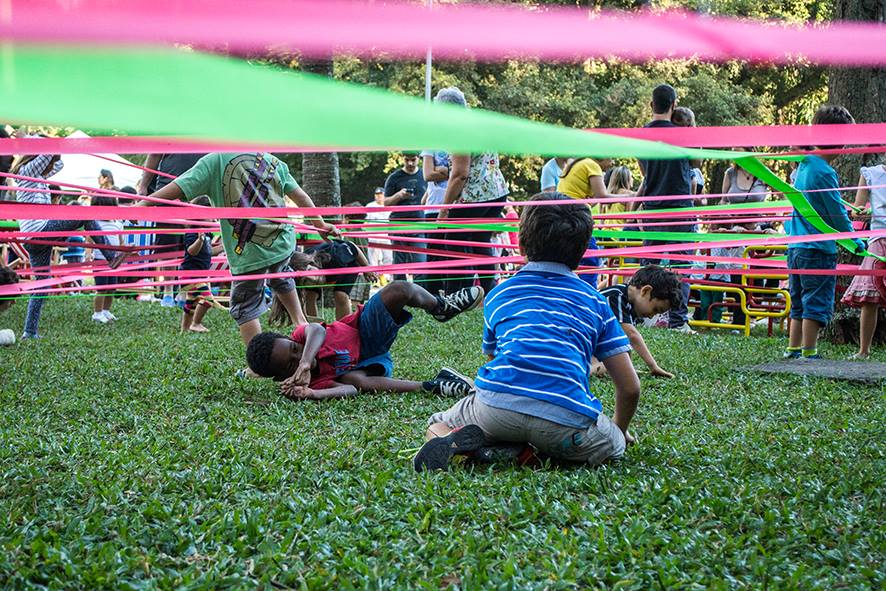 Um grupo brinca com um tecido colorido grande circular. Em roda, um líder tenta “Agora com calma… com calma…”. Em pequenos e silenciosos movimentos ele tenta fazer com que a roda entre em seu ritmo. A maior parte das crianças estavam frenéticas, pulando, gritando, exigindo que o líder abandonasse o cargo e jogasse a toalha, dando-lhes as rédeas do ritmo. A calma e o freio, a pressa e a liberdade…
