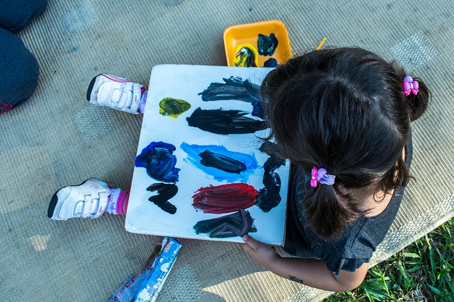 Duas meninas fixam suas esteiras e se instalam ali por horas. Elas parecem ter encontrado uma mina de ouro: uma criança chega, estica a mão, mostra o que é. Seus olhos brilham, sorriem, e olham para baixo dizendo mentalmente “pode escolher o que quiser”. A criança, então, escolhe e sai meio desacreditada, meio feliz de ter realizado uma troca tão fácil, depois de tantas tentativas.
